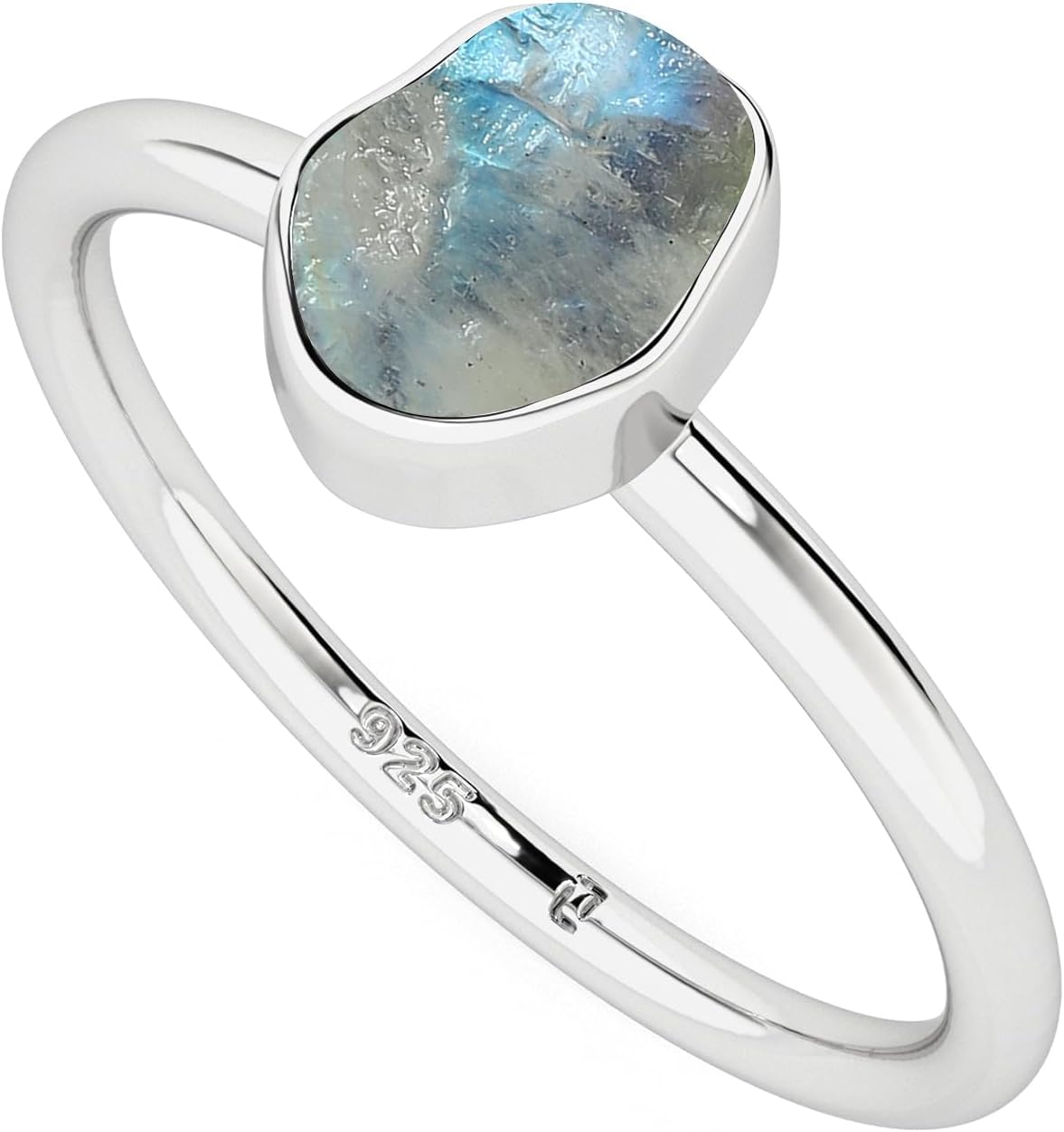 LUSTRE AND LIGHT Natural Raw Gemstones Stackable Ring for Women in Sterling Silver, Birthstone Jewelry Gifts for Her (Bezel-Set)