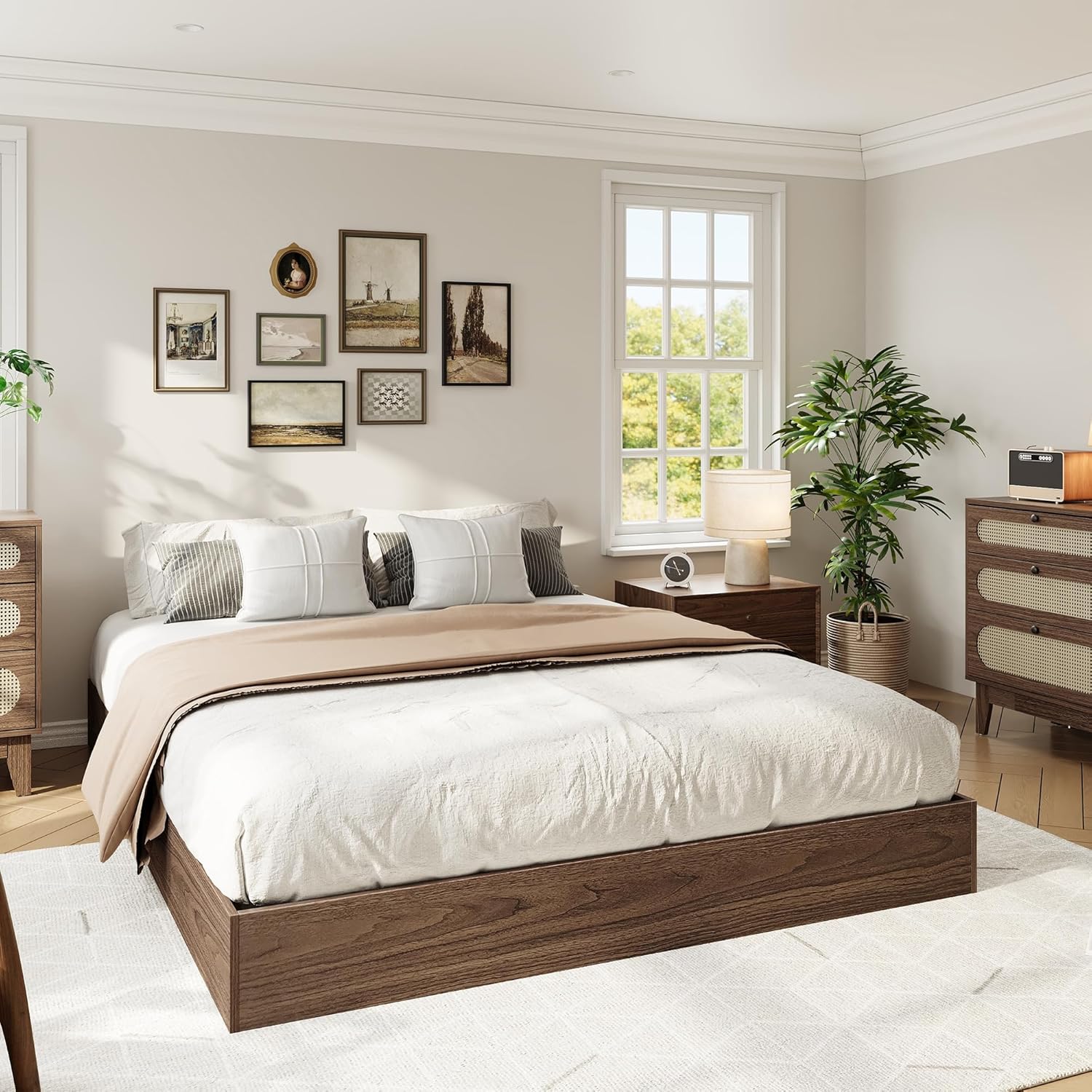 | Set Name | SunnyFurn Wood Platform Bed Set |